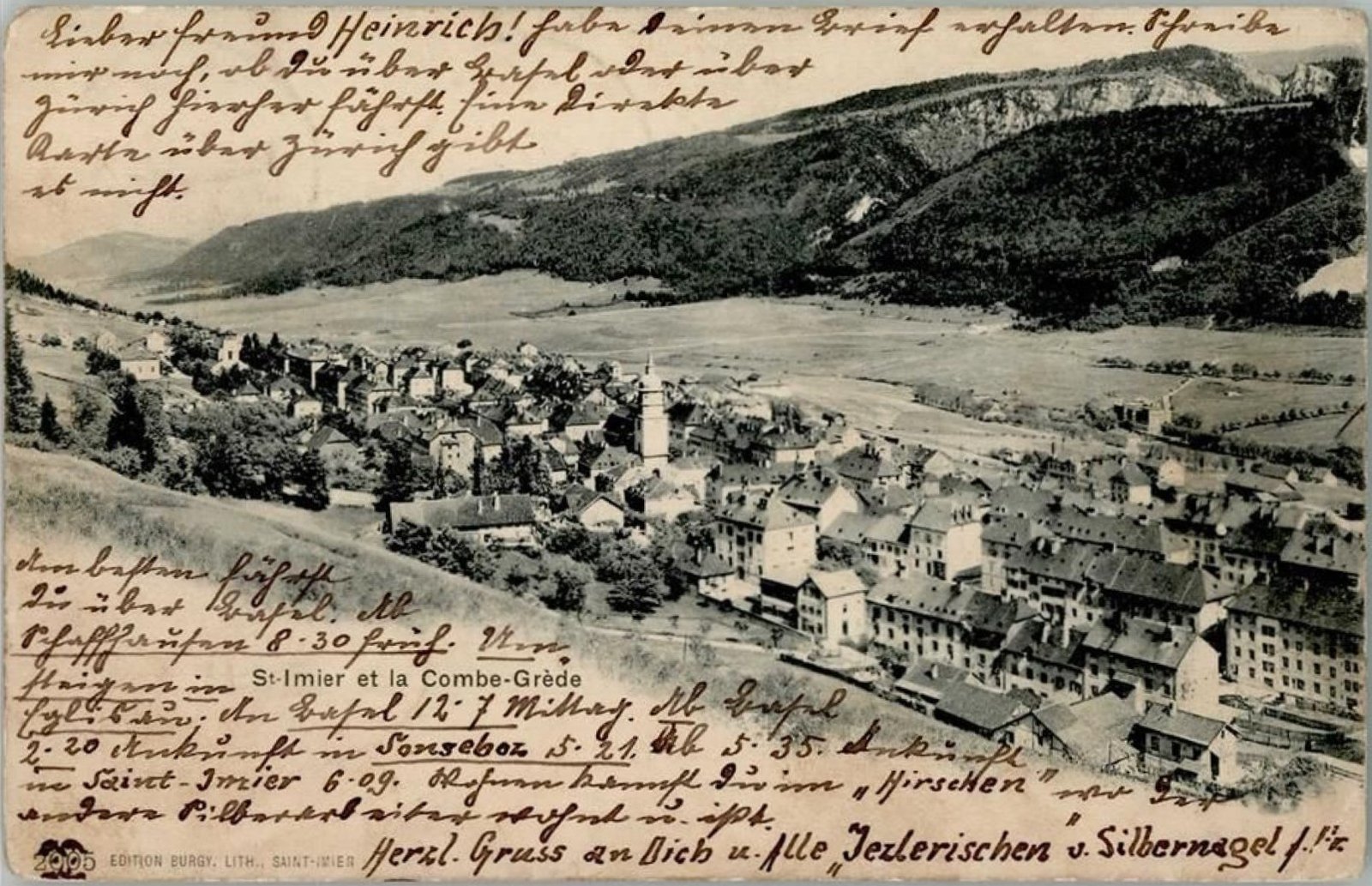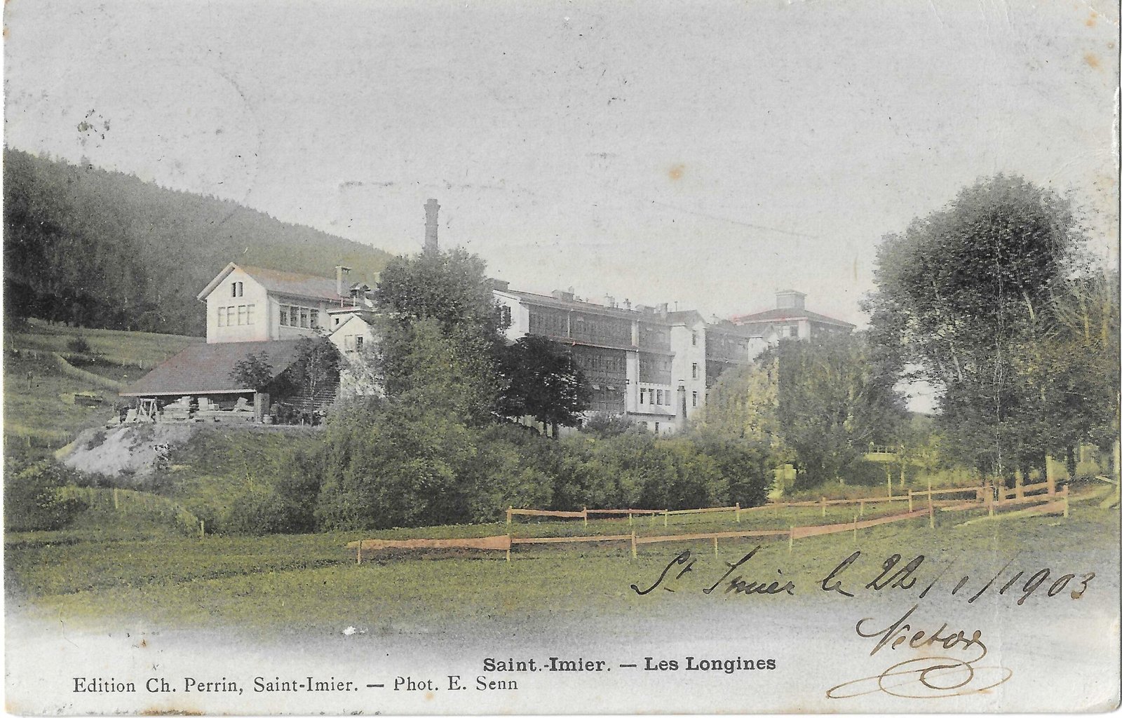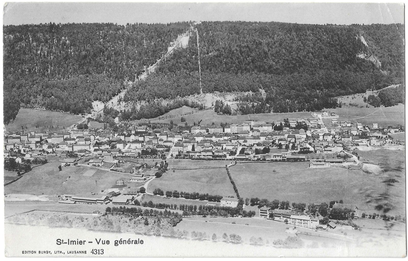 The funicular to the Sonnenberg opened in 1903, but it is not yet visible here. This postcard captures Saint-Imier on the cusp of change, still defined by the topographical relationship between settlement, industry and landscape.